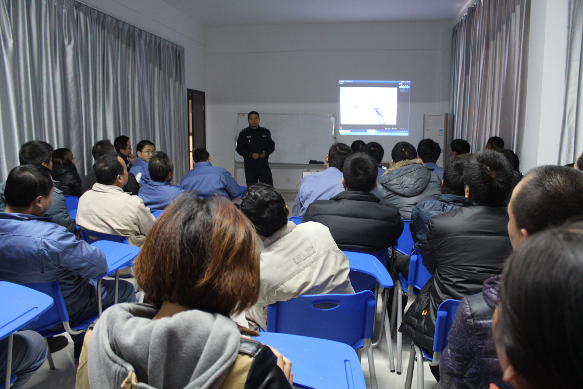 朱警官的講課,有視頻說法,有法規(guī)講解,圖文并茂,生動實用,所有聽講的員工聽得也非常認(rèn)真。
