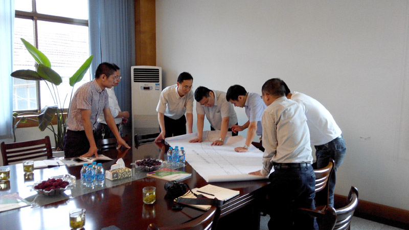 劉區(qū)長(zhǎng)(左三)一行在察看行政區(qū)劃圖。