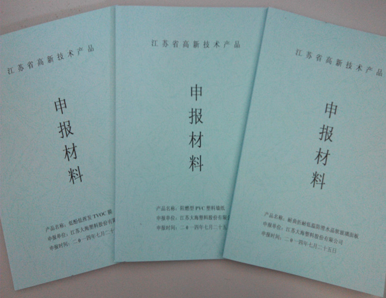 7月28日,公司分別將“低酚低揮發(fā)TVOC膜”、“阻燃型PVC塑料墻紙”和“耐曲折耐低溫防滑水晶軟玻璃面板”申報了高新技術(shù)產(chǎn)品。